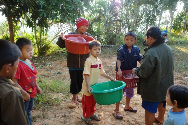 | เตรียมตัวแจกสิ่งของให้พวกเด็กๆ |