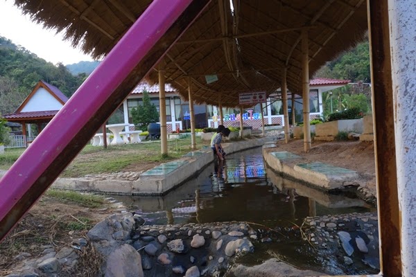 | สถานที่แช่เท้าในน้ำอุ่น และหากต้องการอาบน้ำแร่ ทางอบต. เขาก็จัดห้องน้ำเตรียมใว้ให้เรียบร้อย ในราคาเพียง 100 บาทเท่านั้น หากเป็นแขกที่มาพักที่นี่ อาบได้ฟรีครับ |