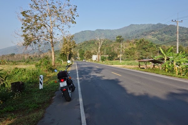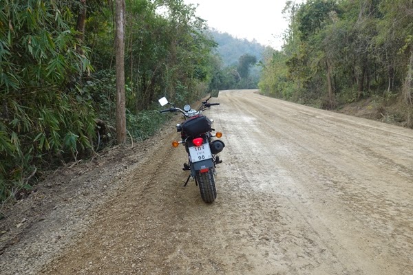 | สภาพของทางหลวงชนบท หมายเลข 1154 ซึ่งถนนขรุขระเป็นบางช่วง แต่ก็ไม่ได้เป็นอุปสรรคในการเดินทางด้วย Suzuki Van Van 125 ของผม |