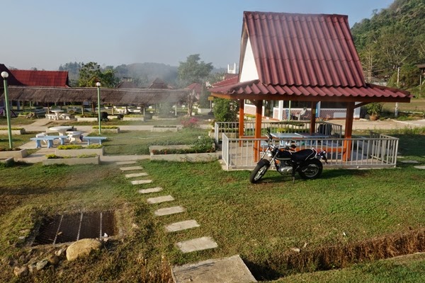| ศาลาพักหน้าห้องพัก จะได้กลิ่นจากบ่อน้ำร้อนตลอดเวลา ทีนี่เขามี่ห้องอาบน้ำแร่ให้ด้วยนะครับ สำหรับผู่ที่เข้ามาพักที่นี่ก็อาบได้ฟรีครับ |